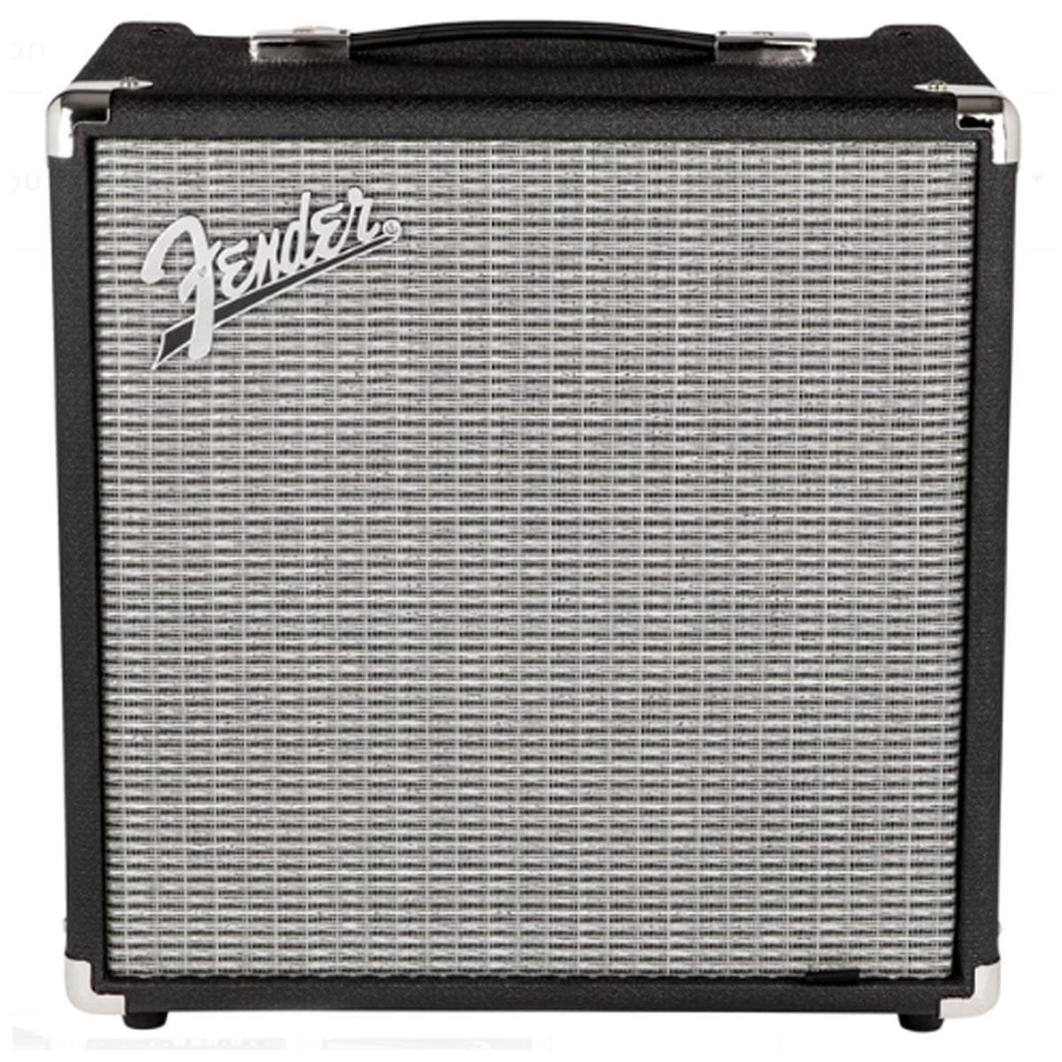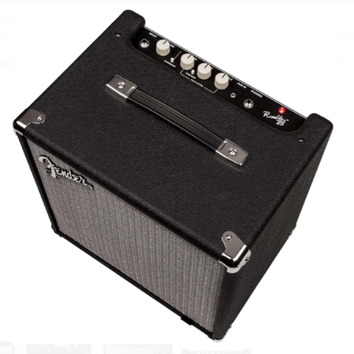 Fender Rumble 25 Bass Amplifier Combo 25W. For bassists everywhere at all levels, Rumble bass combos are re-engineered to be astoundingly compact, portable and lightweight, with seismic Fender bass tone and stage-worthy features. The stylish Rumble 25 combo pumps 25 watts of pure Fender bass tone.