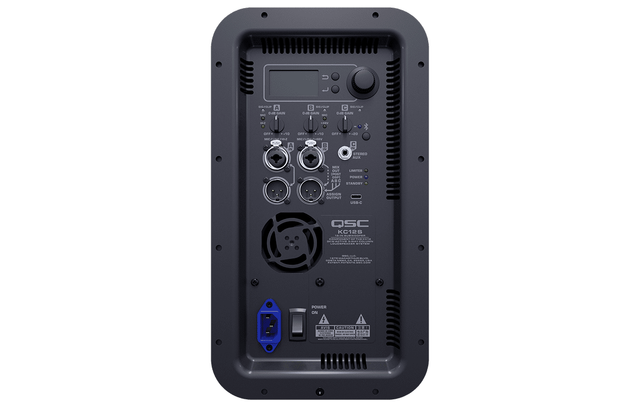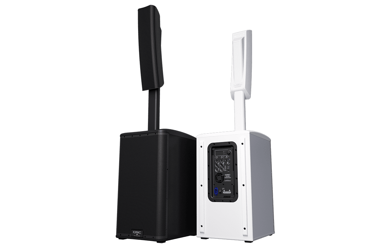- 3-way loudspeaker system featuring a 12-inch (305 mm) subwoofer, two high-excursion 4-inch (102 mm) midrange drivers and a 1-inch (25.4 mm) HF compression driver combined with the proprietary QSC LEAF™ waveguide.