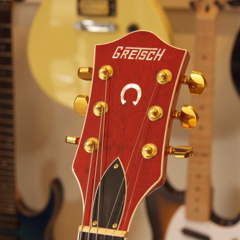 • Pickguard: Gold Plexi with Black Gretsch® Logo and Artist Signature Sign Post Graphic